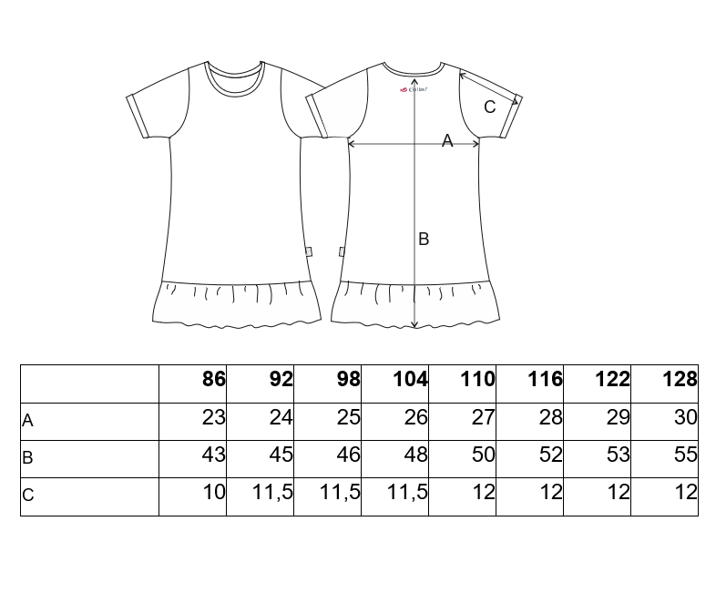 Ve větších velikostech lze nosit jako šatičky. K dostání v různém barevném provedení s módním motivem.
