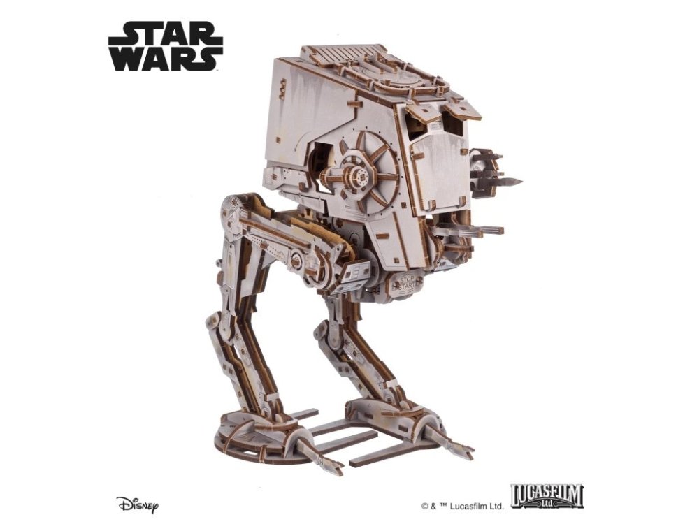 Postavte si ikonické kráčedlo AT-ST. Má dvě nohy, dokáže ujít až 80 cm, má otočný kokpit, otevírací poklopy a pohyblivé blastery. Vyrobeno z barevné překližky, pro stabilitu přidány kovové části.Skládačka dvojnohého terénního průzkumníka z Ugears oficiální kolekce Star Wars je poháněna natahovacím motorem. AT-ST patří mezi děsivý arzenál Galaktického impéria, pomůže vám zničit rebely Povstalecké aliance! Fanoušci jej budou znát z bitev na planetách Hoth a Endor, také z filmů Impérium vrací úder (1980) a Návrat Jediho (1983). Pozor na pasti Ewoků a beranidla!Kráčedlo se pohybuje pomalu a přirozeně, velmi podobně svému filmovému protějšku, na vzdálenosti 60 až 80 cm. Hlava se při pohybu modelu otáčí ze strany na stranu, vytváří tak rozsáhlou palebnou linii. Blasterové kanóny na bradě a lehký blaster a granátomet na líci hlavy lze manuálně otáčet nahoru a dolů, okna kokpitu a horní poklop jsou také otevíratelné. Detailní model z barevné překližky je opravdu realistický. Obsahuje také kovové části, které zaručují jeho stabilitu a odolnost.Natáhněte motor kráčedla AT-ST vložením klíče do pravé strany hlavy, otočte proti směru hodinových ručiček. Při natahování držte tělo modelu (ne hlavu nebo nohy, ty nejsou tak robustní). Kráčedlo položte na rovnou plochu a stiskněte tlačítko zapnutí v přední části modelu. Pošlete AT-ST na misi proti rebelům! Hlavní vlastnosti: Star Wars model s natahovacím motoremdokáže ujít až 80 cmrealistické pohyblivé blastery a granátometotevírací poklopy a oknarealistická pomalá chůzeotočný kokpit s širokou palebnou liniídetailní zpracovánímontáž bez lepidla a nástrojůobsahuje 370 dílkůstřední obtížnost