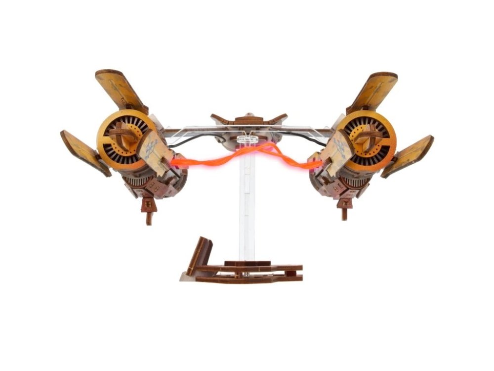 Postavte si svůj vlastní kluzák a závoďte stejně jako Anakin Skywalker! Dřevěný model se houpe do stran, nechybí ani dva detailní motory, které jsou spojeny plazmovým obloukem.Dokážete vyhrát závod Boonta Eve Classic stejně jako Anakin ve filmu Skrytá hrozba? Dvojité motory propojuje svítící LED plazmový oblouk, za nimi se nachází malý kokpit. Tento ikonický kluzák mladému Anakinovi pomohl získat svobodu na domovské písečné planetě Tatootine. Sám si jej nadesignoval i postavil, toto oblíbené vznášedlo v sobě spojuje ryzí sílu, nebojácné pilotování a soutěživého ducha budoucího Jediho.Skládačka je postavena na akrylové noze, která jí pohybuje ze strany na stranu, simuluje tak let kluzáku! Anakin Skywalker sedí uvnitř detailního kokpitu, jehož boční dveře lze otevřít. Dva motory jsou propojeny flexibilními LED vodiči napájenými bateriemi, ty však nejsou součástí balení. Vytvářejí charakteristický efekt plazmového oblouku, stejně jako ve filmu. Pro aktivaci světel jednoduše přepněte spínač umístěný pod motory a sledujte, jak se oblouk probouzí k životu. Pokud se baterie vybije, žádný problém, výměna je opravdu snadná.Model je vyroben z kvalitní barevné překližky tak, aby opravdu dokázal balancovat. Přidáte jej do své Star Wars sbírky? Hlavní vlastnosti: Star Wars model s podstavcem s elektrickým pohonem napájeným bateriemi (nejsou součástí balení)magnetická akrylová noha podstavce vytváří efekt letukluzák manévruje ze strany na stranuotevírací kokpitfigurka Anakina, pohled zepředu a zbokudetailní zpracovánímontáž bez lepidla a nástrojůobsahuje 240 dílkůstřední obtížnost