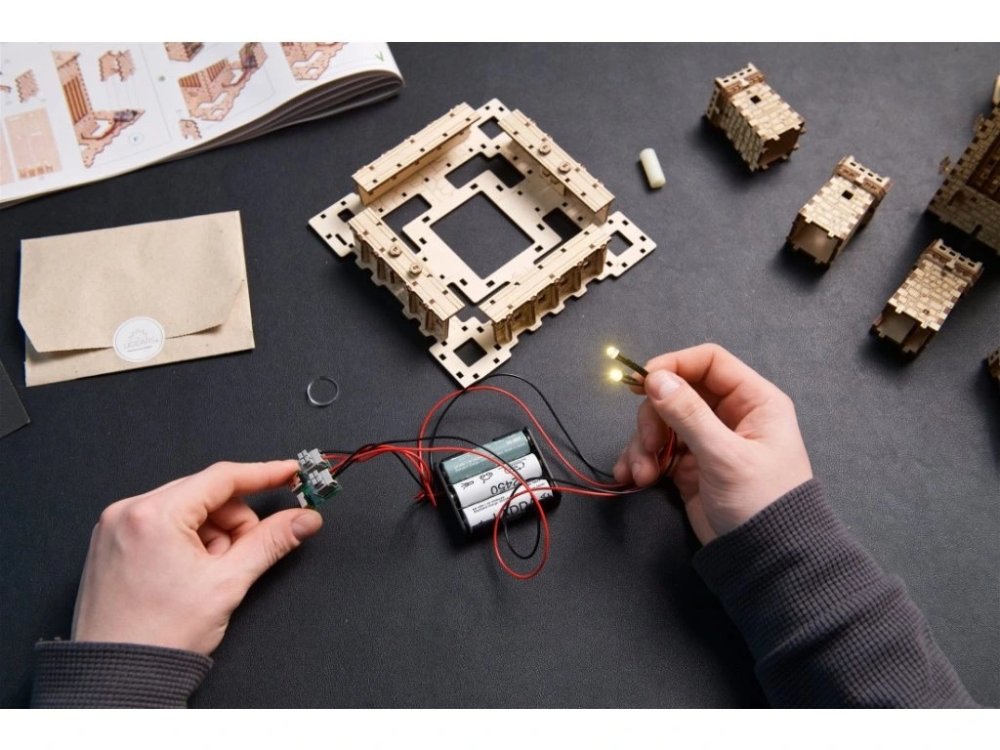Oživte historii sestavením Alexandrijského majáku. Model je vybaven LED světly a elektrickými součástkami, které maják osvětlují zevnitř, takže je zároveň pěknou i funkční dekorací pro Váš noční stolek. Dřevěný model Alexandrijského majáku je fascinující replikou připravenou k sestavení. Protože byl alexandrijský maják zasvěcen Diovi, je náš model zakončen vyrytým výřezem krále bohů, který svírá blesk. Různorodé detaily dodávají celému objektu architektonickou zajímavost a laserové gravírování napodobuje vzhled kamenných kvádrů a šindelů. Model má také pohyblivou součást: brány v podstavci vpředu i vzadu, které se otevírají otočnými knoflíky. Vybaveno detailním návodem k sestavení. Hlavní vlastnosti: 340 precizně vyřezaných dílkůstřední obtížnost sestaveníelektrické komponenty – USB-C kabel ani 3xAA baterie nejsou součástí balenínavrženo a vyrobeno na Ukrajině