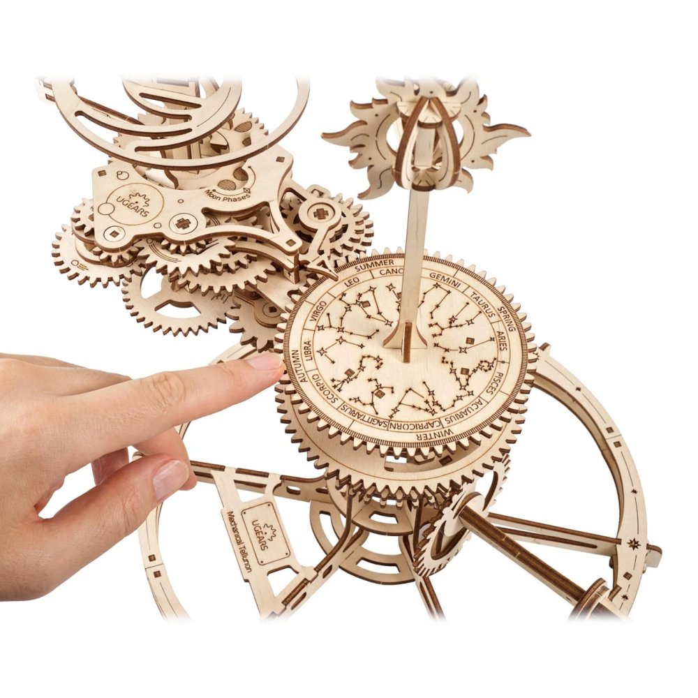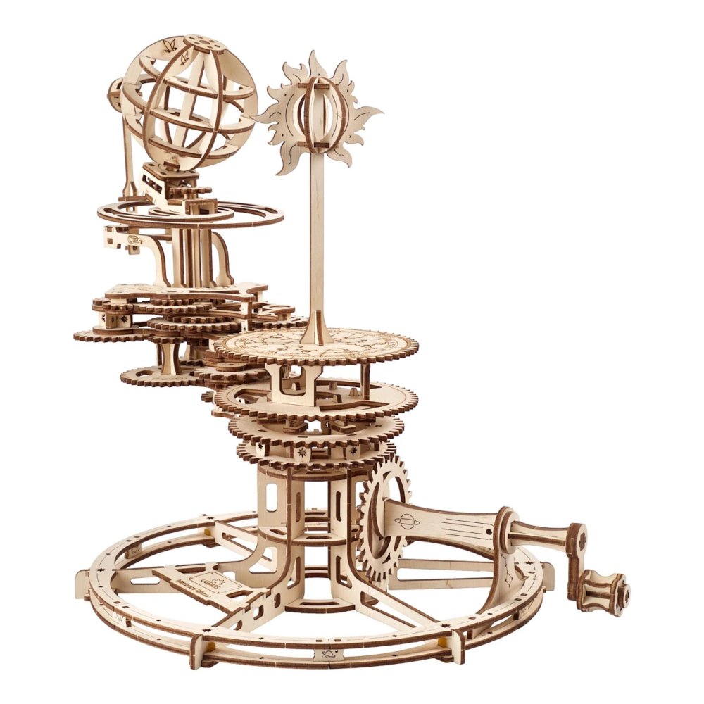 O obězích nebeských sfér! Stavebnice Telluria vyrobená z překližky. Objevte kouzlo renesanční astronomie a převratnosti díla Mikoláše Koperníka při stavbě propracovaného mechanického modelu poprvé vypracovaného holandským matematikem Christiaanem Huygensem. Znázorňuje vzájemné postavení Země, Měsíce a Slunce vůči souhvězdí zvířetníku, ale navíc také naklonění zemské osy i roviny rotace měsíce. Vesmírná tělesa jednoduše roztančíte otáčením klikou, které je ve stejném poměru k rotaci modelu Země, na celé představení tak máte dostatek času. Všechny fáze mechanismu můžete detailně sledovat, přemýšlet o nich a názorně je demonstrovat svým přátelům, nebo dětem. Model je samozřejmě možno nastavit dle kalendáře a pozorovat všechny znázorněné vztahy přesně tak, jak se zrovna odehrávají, vždy s jedním otočením klikou za den. Tellurium je skvělým dárkem pro všechny, kdo touží odhalovat přírodní jevy, ať už jde o malého studenta, nadšeného astronoma, či jen zvídavého fanouška mechaniky. Vybaveno detailním návodem k sestavení. Hlavní vlastnosti:249 precizně vyřezaných dílkůstřední obtížnost sestavenímožnost detailního nastavenívyobrazuje postavení Země, Měsíce a Slunce s přesností na tisícinu dnenavrženo a vyrobeno na Ukrajině