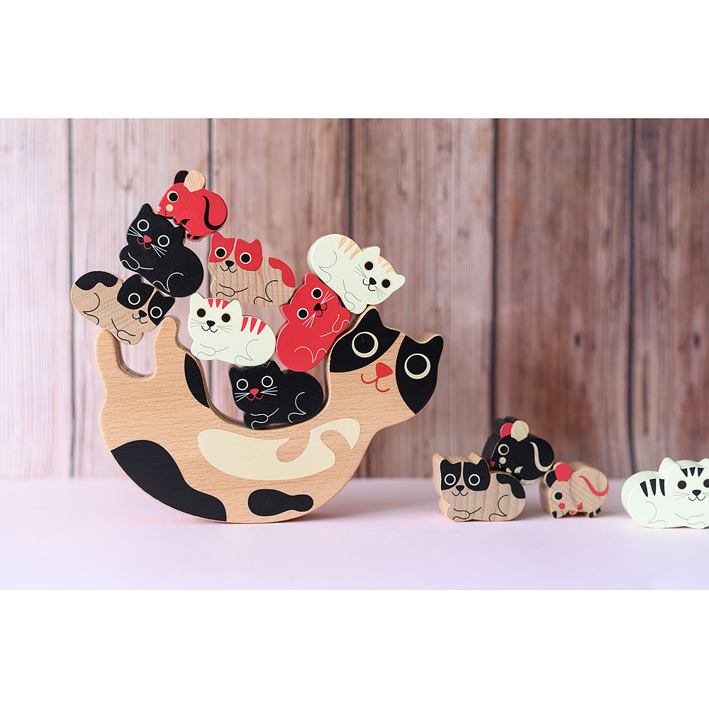 Hoďte kostkou a zkuste na mámu kočku naskládat všechna koťata a to dle barvy na kostce. V balení naleznete malé dílky kočiček, ale i myšek. Pozor, ať Vám to nespadne! Ilustrováno Ingelou P. Arrhenius. Obsahuje 14 dílků. Hlavní vlastnosti: 1 základna, 12 herních dílků a 1 kostkailustrace Ingely P. Arrheniusvyrobeno ekologicky, šetrně k životnímu prostředí Švédská umělkyně Ingela Peterson Arrhenius se narodila v roce 1967. Umění a design měly vždy místo v jejím životě a než začala její kariéra ilustrátorky, Ingela pracovala jako umělecká vedoucí ve Stockholmu. Poté studovala reklamní a grafický design na umělecké škole také ve Stockholmu. V roce 1992 začala podnikat jako ilustrátorka na volné noze a pracovala mezinárodně napříč reklamou, designem, nakladatelstvím… V minulosti vytvářela tiskové vzory pro tkaniny, tapety, papírnictví, také pracovala na obalech, produktovém designu, bytových doplňcích a hračkách. Její plakáty a designové hračky najdete po celém světě. Má vášeň pro retro styl, což je jasně vidět na jejich dílech a také v jejím nadšení pro typografii a barvy. Nyní žije ve Stockholmu s manželem a 2 syny.
