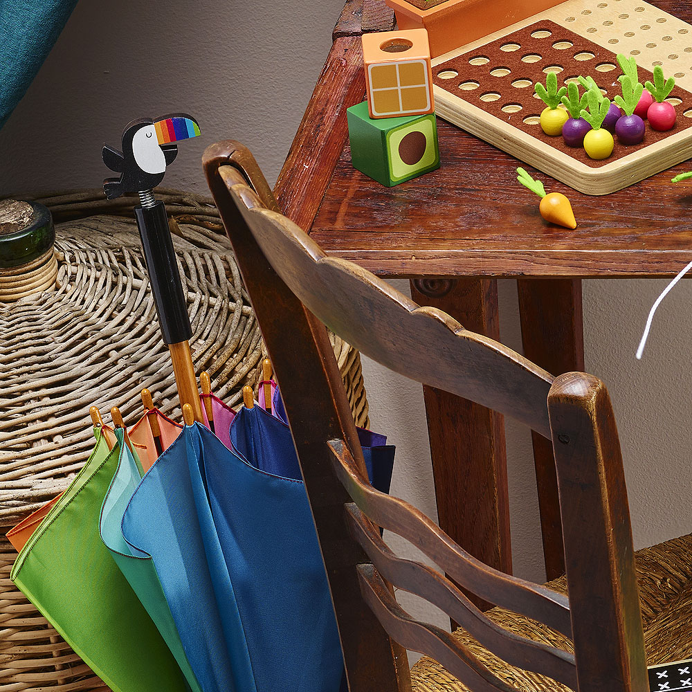 Nebojte se jít ven i když prší! Děti budou před kapkami chráněné díky deštníku s originálním duhovým potiskem a madlem s veselým tukanem rajským. Design n Andy Westface. Vyrobeno ve Francii. Hlavní vlastnosti: originální a poutavé duhové provedenídélka 68 cmdesign Andy Westfacevyrobeno ve Francii Andy Westface je ilustrátor žijící a působící v Hongkongu. Svou prací se snaží zprostředkovat silné pocity a jasné myšlenky za pomoci jednoduchých tvarů, kompozic i barevnosti. Typickými prvky jeho děl jsou zvířata a duha, které si oblíbil pro jejich čistotu, upřímnost a schopnost vzbuzovat radost.