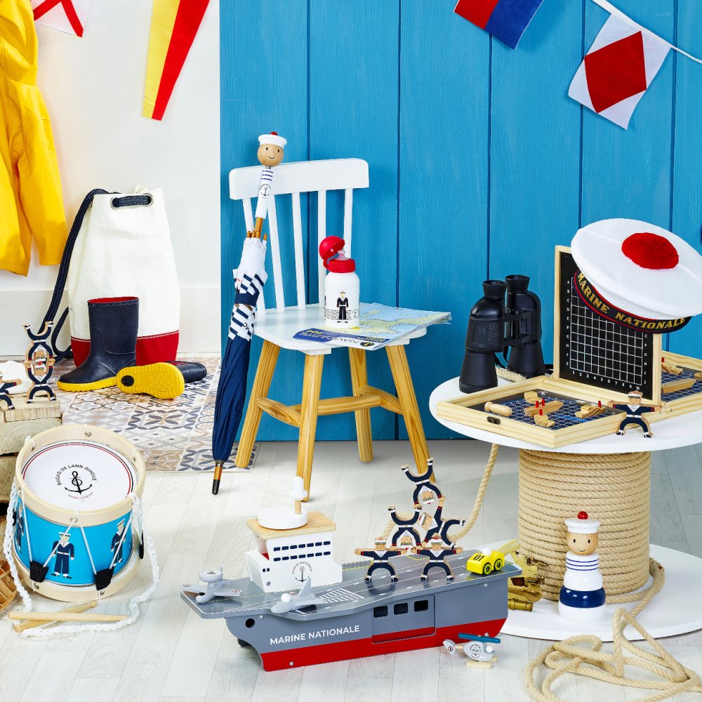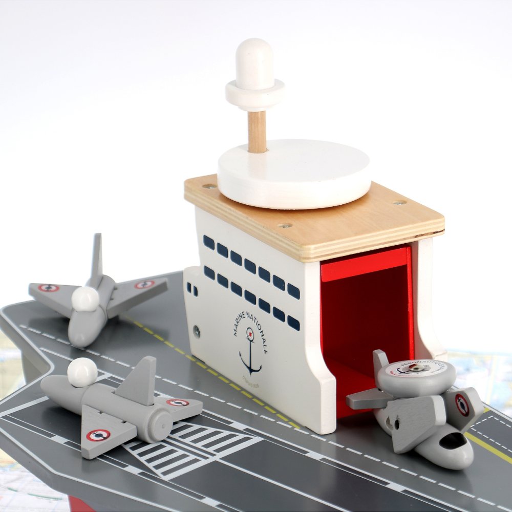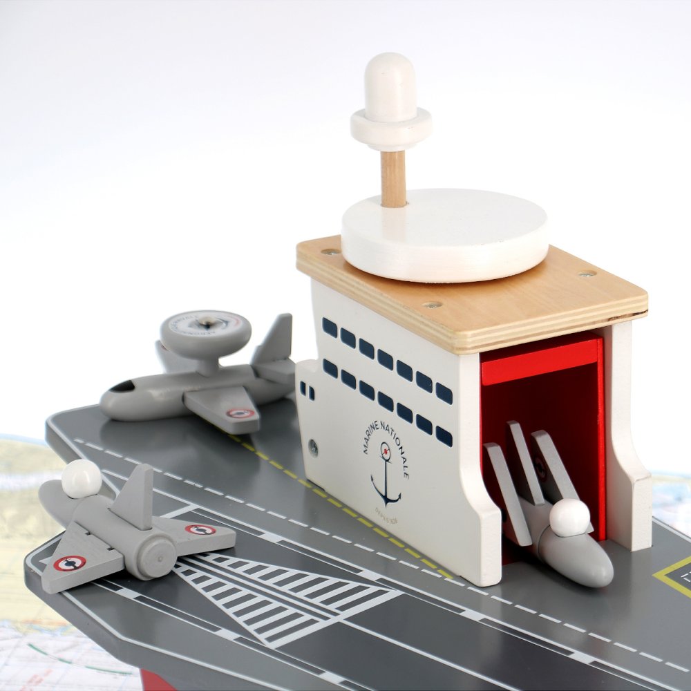 S letadlovou lodí mohou Vaše děti vyrazit na širé moře bránit mír a bezpečí. Je vybavena řadou letadélek i jiných strojů a nabízí dostatek prostoru pro hry s figurkami, nebo i dalšími hračkami. Jako praktický úložný prostor pro příslušenství dodávané s lodí může sloužit rozměrné podpalubí ukryté za dvojicí různých dvířek. S palubou je funkčně propojeno výtahem ve věži, který je nápaditě ovládán kolem v podobě radaru, umístěným na střeše. Hračka je vyrobena ze silné a odolné, přitom ale lehké překližky. Svou barevností a malovanými detaily věrně napodobuje skutečné letadlové lodě, samozřejmě nejsou opominuty ani výsostné znaky francouzského námořnictva. Hlavní vlastnosti: letadlová loď, 2 stíhačky, 1 průzkumný letoun, helikoptéra a servisní vozidlopraktický úložný prostor v podpalubífunkční výtah spojující palubu s podpalubímatraktivní a odolné dřevěné zpracování Šťastnou plavbu! To je přání námořníkům, kteří vyráží na moře. Toto přeje i Vilac, se svou kolekcí, kterou vyvinuli ve spolupráci s francouzským námořnictvem. Vůni moře vítr dofoukal až do pohoří Jura, výsledek jistě potěší malé námořníky a námořnice, také dospělé, kteří pečují o své vnitřní dítě!