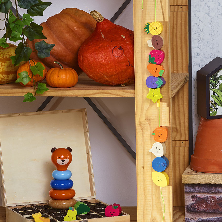 Tato hra s dřevěnými korálky je jednou z prvních tvůrčích aktivit, které můžete nabídnout svému dítěti od 18 měsíců. Navlékaní velkých dřevěných korálků pomůže vašemu dítěti rozvíjet jemnou motoriku, koordinaci ruka-oko. Tento set je krásně zdoben ilustracemi od Andyho Westface. Navlékat tyto pěkné dřevěné korálky s tématem ovoce a zeleniny je pro děti radostí. Krásný způsob, jak objevovat tvary a barvy. Na konci hraní můžete všechny kousky uložit do pouzdra ve tvaru melounu. Hlavní vlastnosti: rozvíjí pozorovací a analytické schopnostirozvíjí jemnou motoriku a koordinaci ruka-okodesign Andy Westfaceobohacení slovní zásobyvelikost korálku 4 cm Andy Westface je ilustrátor žijící a působící v Hongkongu. Svou prací se snaží zprostředkovat silné pocity a jasné myšlenky za pomoci jednoduchých tvarů, kompozic i barevnosti. Typickými prvky jeho děl jsou zvířata a duha, které si oblíbil pro jejich čistotu, upřímnost a schopnost vzbuzovat radost.