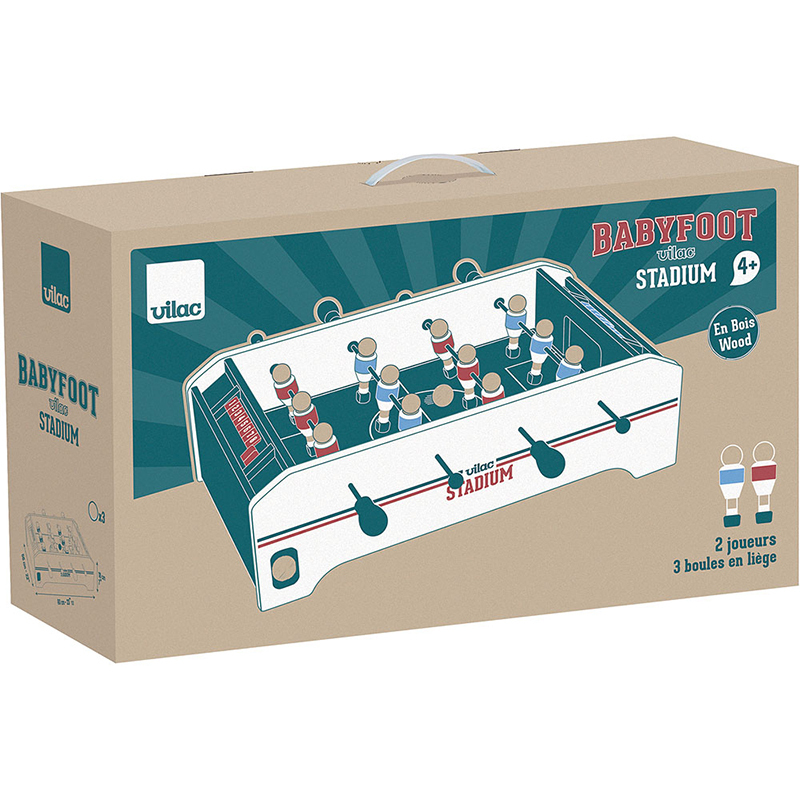 Dřevěný malovaný stolní fotbálek pro děti od 4 let. Hráči se snaží dát protivníkovi gól, pokud se jim to podaří, zaznačí si tuto změnu na ukazateli skóre. Každý hráč hraje s 6 figurkami na 2 tyčích s madly. V balení také 3 míčky. Hlavní vlastnosti: oblíbená hračka v dřevěné podoběsoučástí balení jsou 3 míčkypočítadlo nad brankami