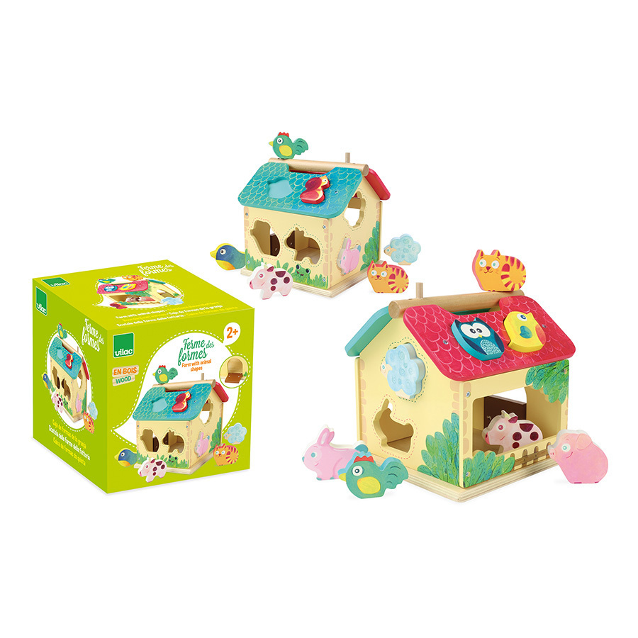 Vkládačka v podobě dřevěného domečku nabízí dětem vkládání tvarů hospodářských zvířátek do správných výřezů. Děti si také mohou také zvířátka pojmenovávat a vyprávět o nich.