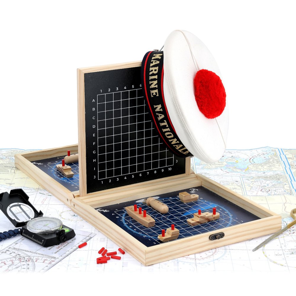 Klasická strategická hra v přenosném dřevěném kufříku, s motivy francouzského námořnictva může dětem pomoci zábavnou formou rozvíjet poznávací dovednosti. Cílem hry je střídavým tipováním v souřadném systému jako první odhalit pozice protihráčovy flotily a potopit ji. Kufřík se po rozložení promění na hrací pole oddělené přepážkou, jejíž povrch je přizpůsoben k psaní křídou. Křídy jsou součástí balení a slouží hráčům k zaznamenávání vývoje hry. Sady loděk různých velikostí a tvarů jsou spolu s tyčinkami označujícími případné zásahy baleny ve dvou dekorovaných textilních sáčcích. Herní dílky jsou vyrobeny z masivního, pečlivě opracovaného dřeva. Díky praktickému kufříku lze hru vždy snadno uklidit a může děti provázet na cestách. Hlavní vlastnosti: kufřík s herním plánem, 10 lodí, 40 tyčinek, 2 sáčky a 2 křídyatraktivní a odolné dřevěné zpracovánípraktické balení Šťastnou plavbu! To je přání námořníkům, kteří vyráží na moře. Toto přeje i Vilac, se svou kolekcí, kterou vyvinuli ve spolupráci s francouzským námořnictvem. Vůni moře vítr dofoukal až do pohoří Jura, výsledek jistě potěší malé námořníky a námořnice, také dospělé, kteří pečují o své vnitřní dítě!