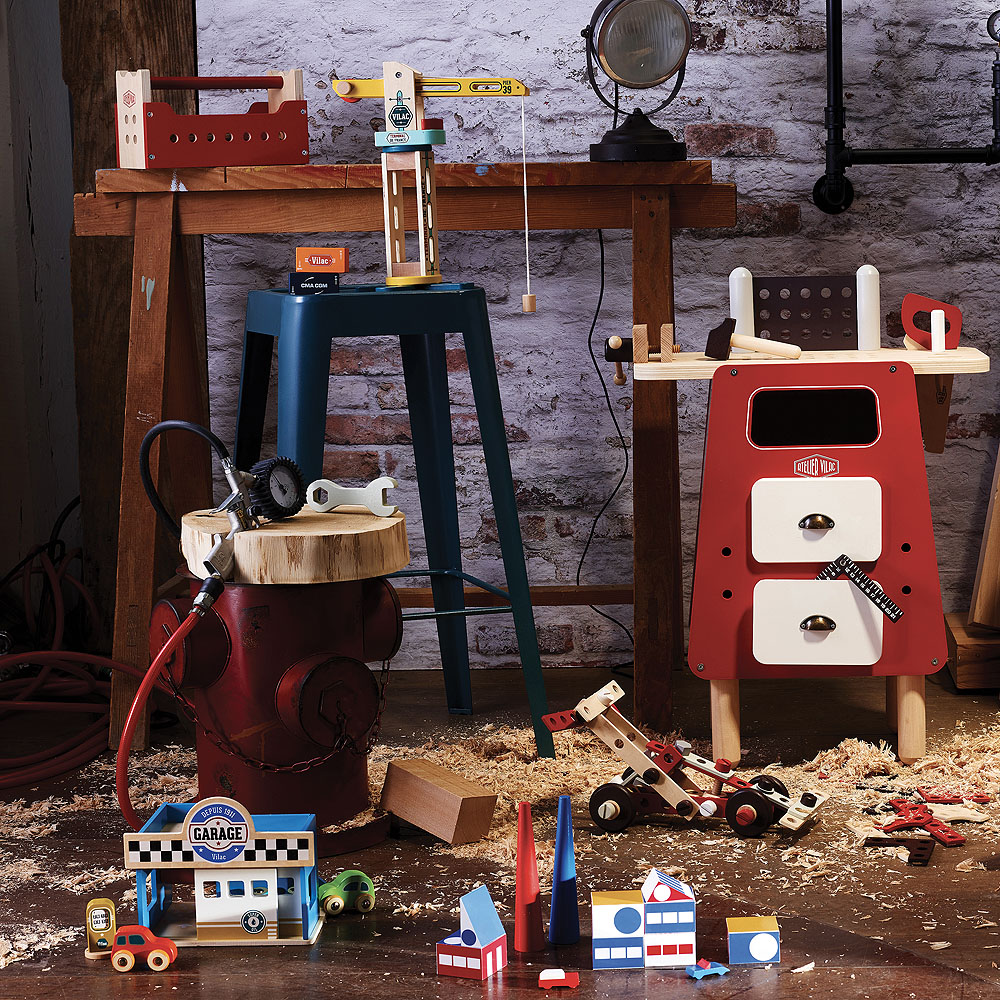 Páni, co to vidím v tomto dobře vybaveném kufru s nářadím? Kladivo, klíč, pila a spousta matic a šroubů.A ještě něco navíc? Tato chytrá sada nástrojů je základem pro mnoho konstrukcí: nákladní auto, jeřáb, robot a mnoho dalších, vše závisí na představivosti dětí. Hlavní vlastnosti: obsahuje 96 ks příslušenstvídesign Ateliéru Vilaclze sestavit 3 modulární konstrukce Ateliér Vilac Postavte, renovujte, udělejte si sami, jedním slovem… Sen! Zcela nová řada pro kutily. Jako byste opravdu cítili vůni dřeva, dotýkali se hoblin z bukového dřeva na podlaze dílny. Ponořte se s námi do tohoto kreativního světa, který dá volnou ruku fantazii malých i velkých dětí. Krásná vintage kolekce s modulárními a doplňkovými hračkami.
