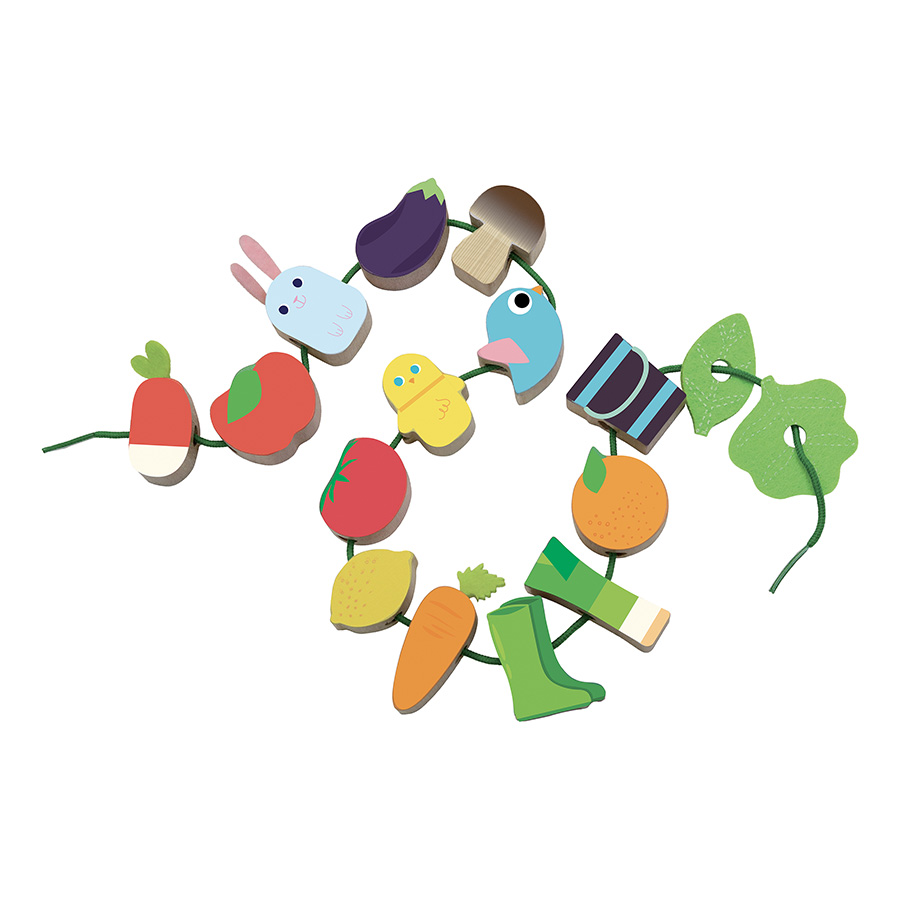 Krásná provlékačka v motivu farmy. V kompaktním balení najdete 14 ilustrovaných dřevěných korálků (např. lilek, rajče, ptáček, gumáky), které děti mohou navlékat na textilní šňůrku. Hračka pomáhá s rozvojem jemné motoriky. Vybaveno bezpečnostními sponami. Vhodné od 18 měsíců. Hlavní vlastnosti: 14 korálkůvyrobeno ekologicky, šetrně k životnímu prostředí
