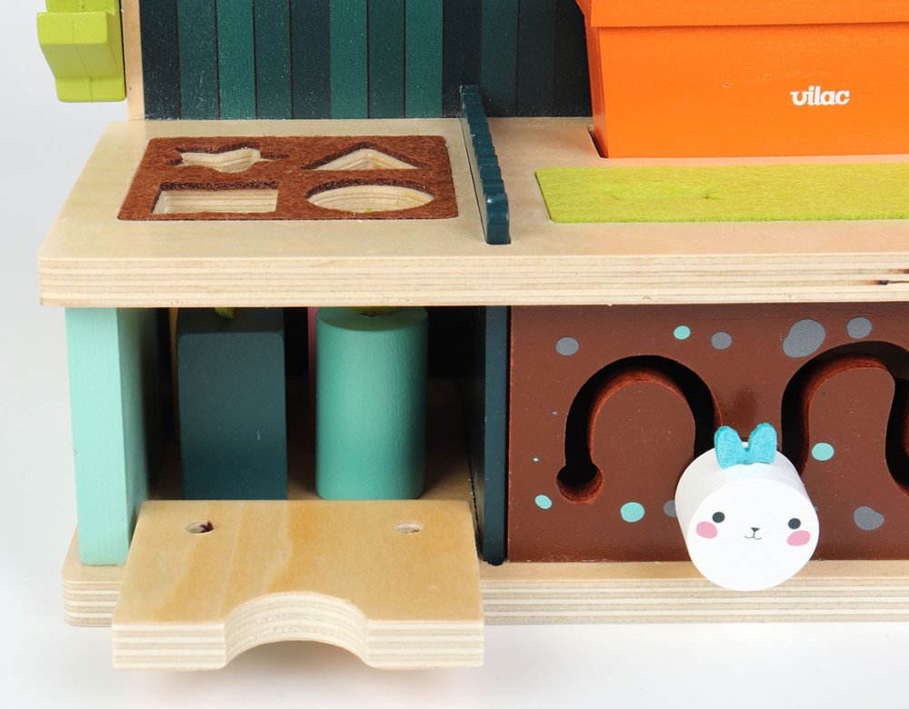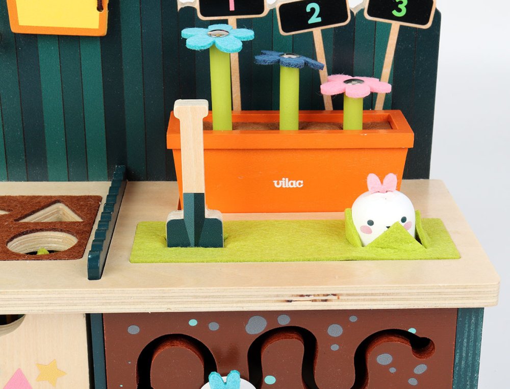 Přiveďte své dítě zpět k přírodě se zahradní multi-aktivitní hračkou, inspirovanou venkovským životem. Zahrádka je nejenom dekorativní, ale také nabízí mnoho aktivit pro Vaše dítě, přičemž mu umožňuje "dělat věci jako dospělí". S květinami k zasazení, zeleninou k sklizni, včelou, která cestuje po kovovém drátě, Vaše dítě během hraní zažije spoustu zábavy. Když použije lopatku, králíček vyleze ze svého doupěte. Zahradní multi-aktivitní hračka perfektně zapadá do naší řady hraček inspirovaných přírodou, jako je zahrada nebo zelinářství. Ideální hra pro malé zahradníky. Obsahuje: 3 květiny k zasazení,1 dřevěná lopatka,1 dřevěná konev,4 barevné dřevěné zeleniny. Multifunkční zahrádka poskytuje dětem bohaté smyslové podněty, což podporuje rozvoj jejich hmatu, zraku a sluchu. Ideální hračka pro metodu Montessori. Jsou to speciálně navržené hračky, které vycházejí z pedagogické metody vyvinuté italskou lékařkou a pedagožkou Marií Montessori. Tyto hračky jsou navrženy tak, aby podporovaly přirozený vývoj dítěte a umožňovaly jim objevovat svět okolo sebe pomocí vlastního zájmu a aktivity. Montessori pedagogika klade také důraz na respekt k individuálnímu rytmu každého dítěte. Rozvíjí také psychomotorické dovednosti a podněcuje dětskou fantazii. Díky němu si dítě může hrát a učit se mnoho hodin. Přírodní dřevo použité při výrobě zajišťuje bezpečnost a krásný nadčasový vzhled, perfektní doplněk při zařizování dětského pokoje. Při hře se děti učí sdílet, spolupracovat a komunikovat. To podporuje rozvoj sociálních dovedností a přípravu na interakce s vrstevníky. Hlavní vlastnosti: podporuje rozvoj jemné motoriky a koordinace ruky a okapodněcuje kreativní myšlení a vývoj představivostiideální hračka pro metodu Montessorihra pro malé zahradníkysenzorická stimulaceedukace skrze hru