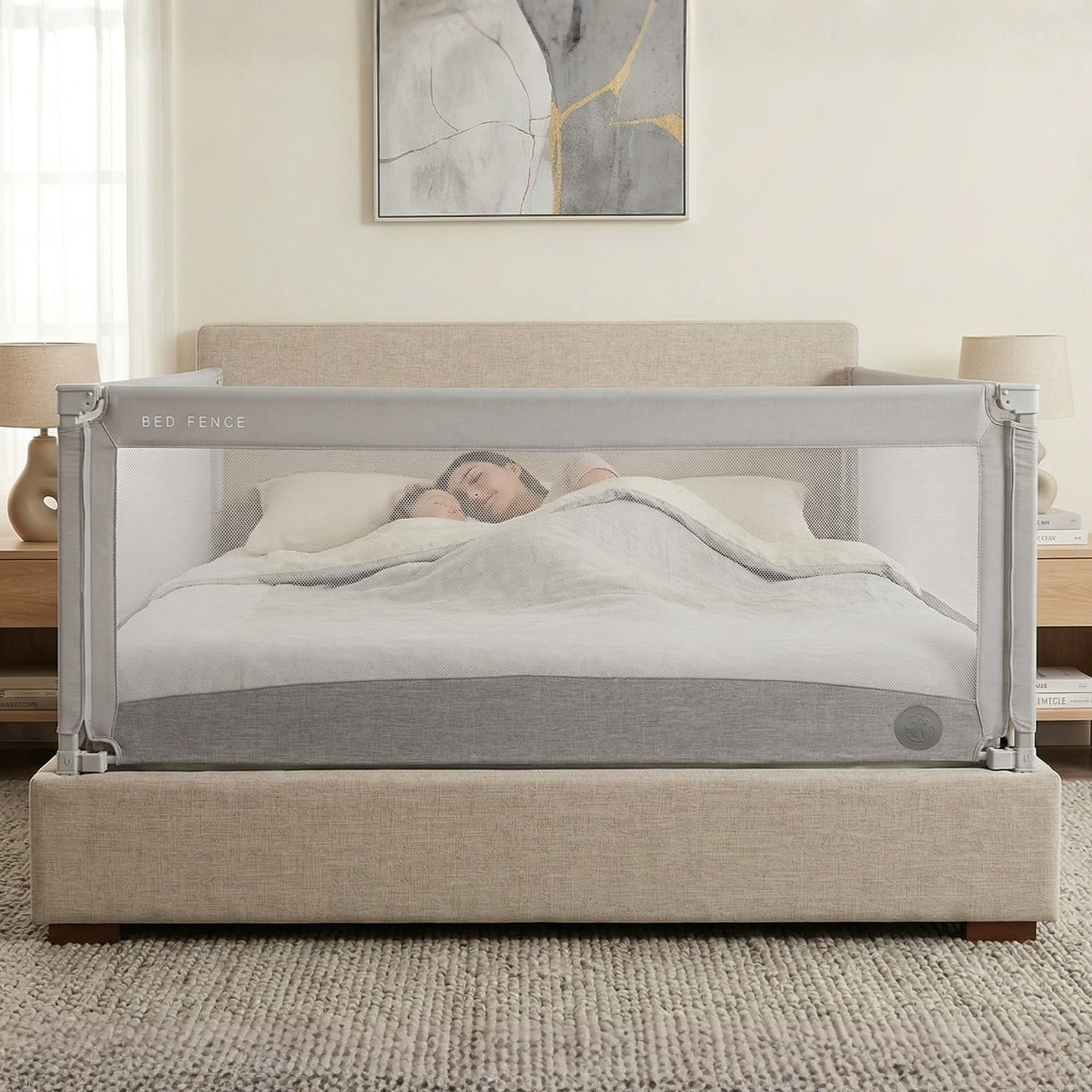 Zábrany na postel Monkey Mum® splňují přísné evropské normy pro dětské výrobky.-Certifikace: CE (EN71 – evropská norma pro bezpečnost hraček)-Testované materiály vhodné pro děti-Bezpečnostní tříkrokový zámek proti otevření dítětem