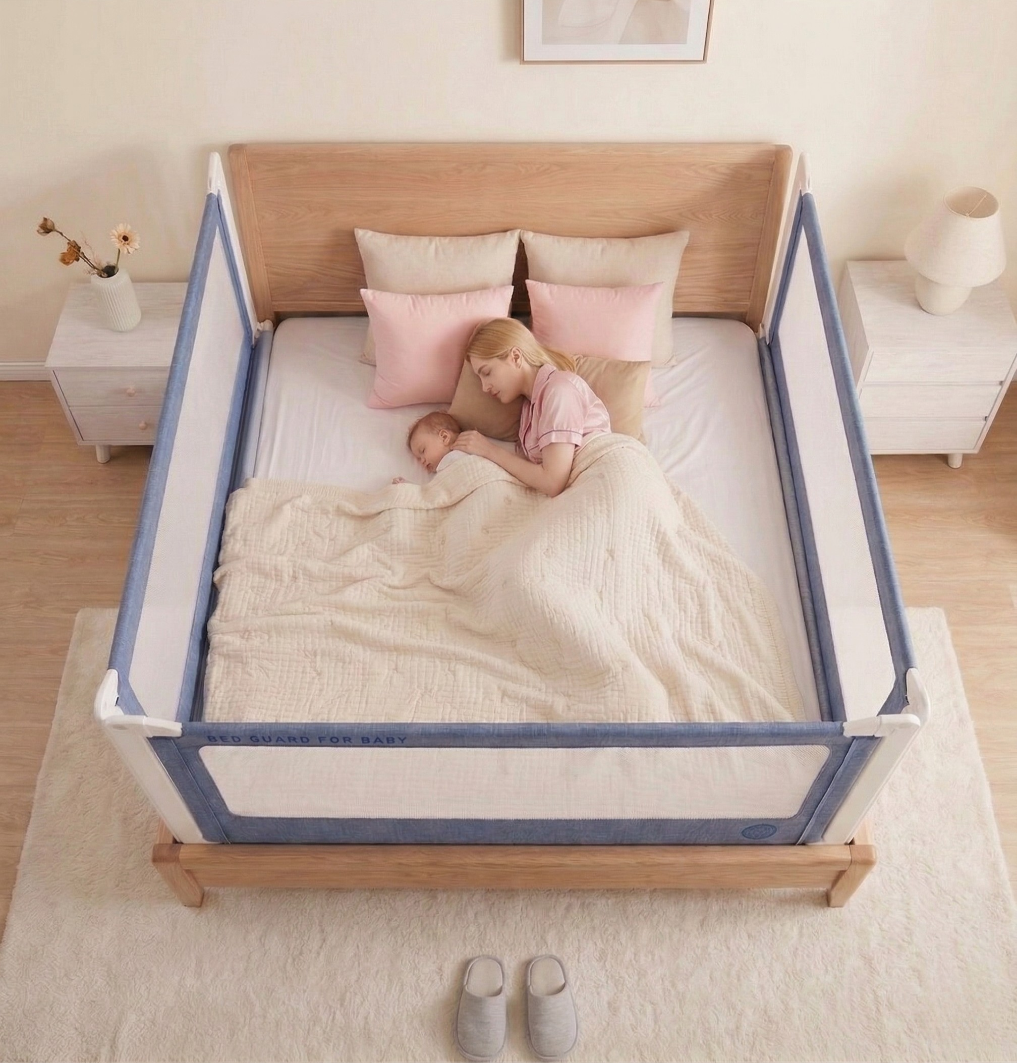 Spojením 2 a více kusů zábran vznikne bezpečná a pohodlná ohrádka na postel, která během dne může být útulným místem na hraní.