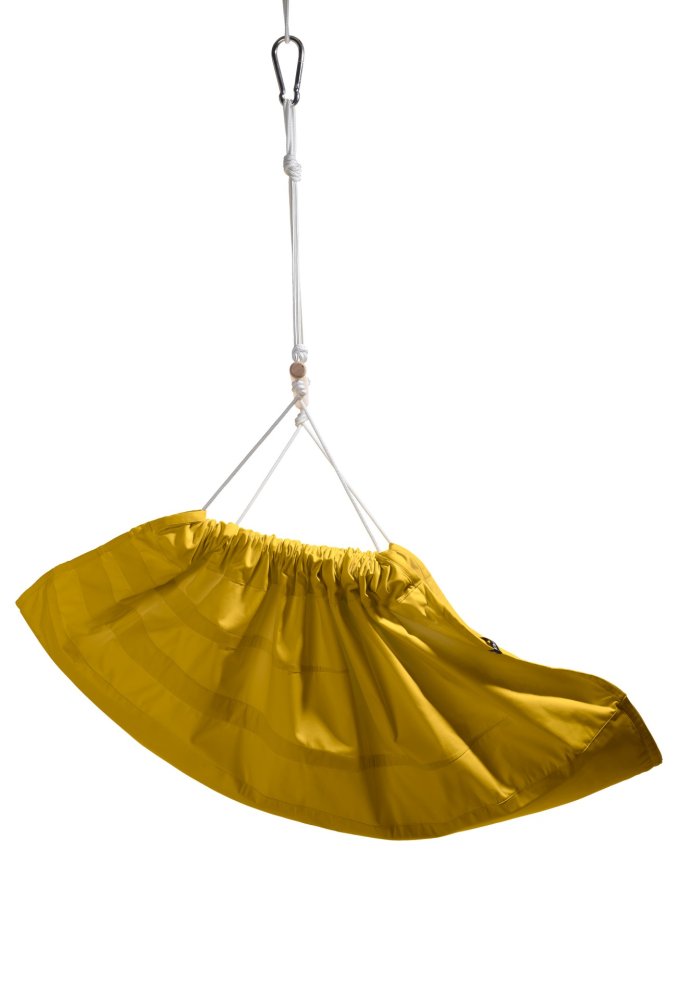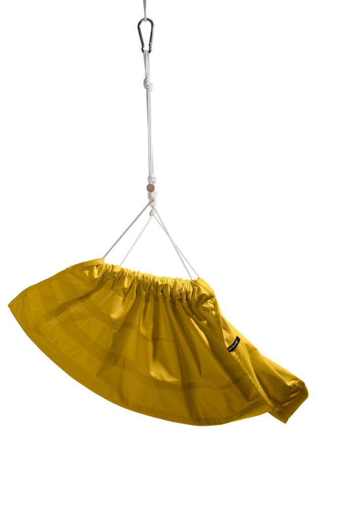 526 KčZávěsné houpací křeslo hořčicové HOJDAVAK MAXI s polštářkem, Lano černé – Indoor tkanina