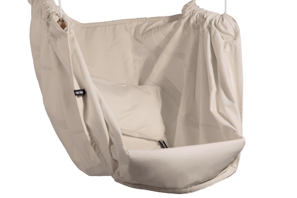 167 KčZávěsné houpací křeslo krémové HOJDAVAK MAXI s polštářkem, Lano černé – Indoor tkanina