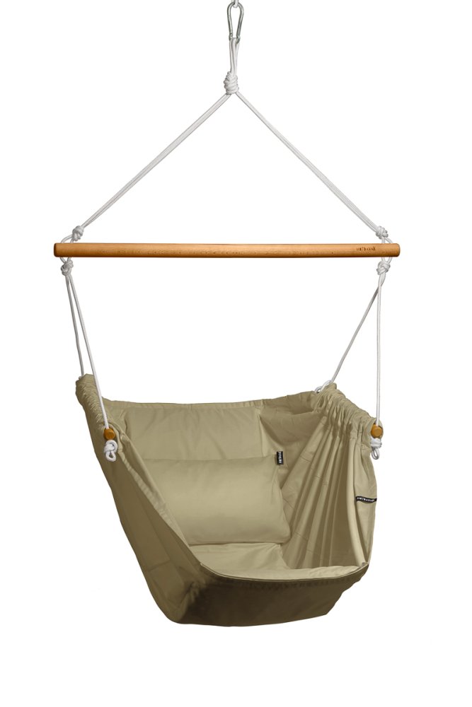 3 391 KčZávěsné relaxační křeslo béžový melír HOJDAVAK MAXIMUS OUT s polštářkem, Dřevo Outdoor, Lano černé