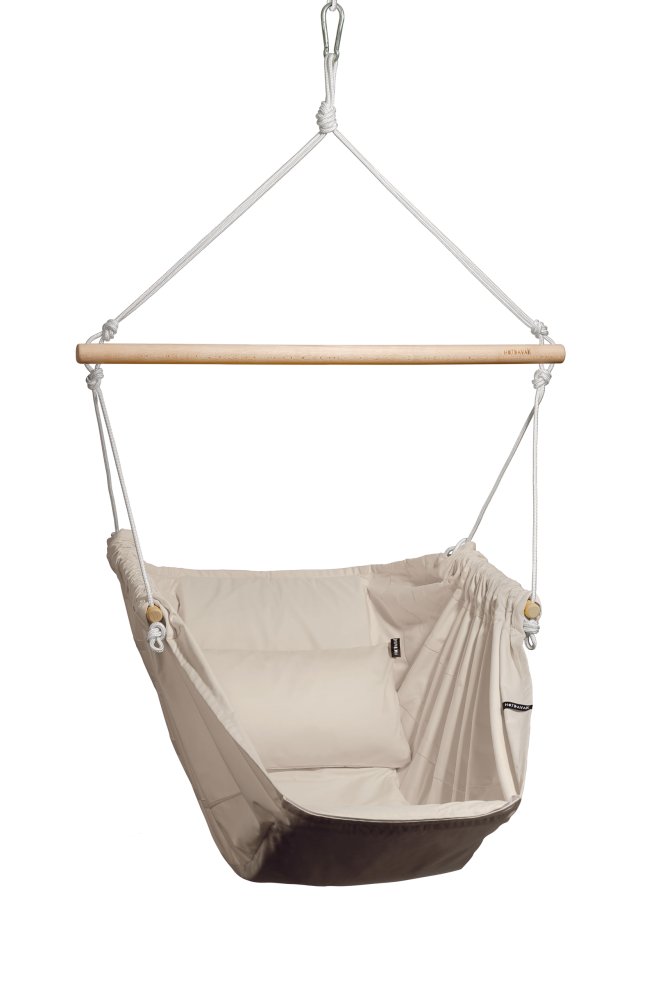 352 KčZávěsné relaxační křeslo krémové HOJDAVAK MAXIMUS s polštářkem, Dřevo Outdoor, Lano bílé