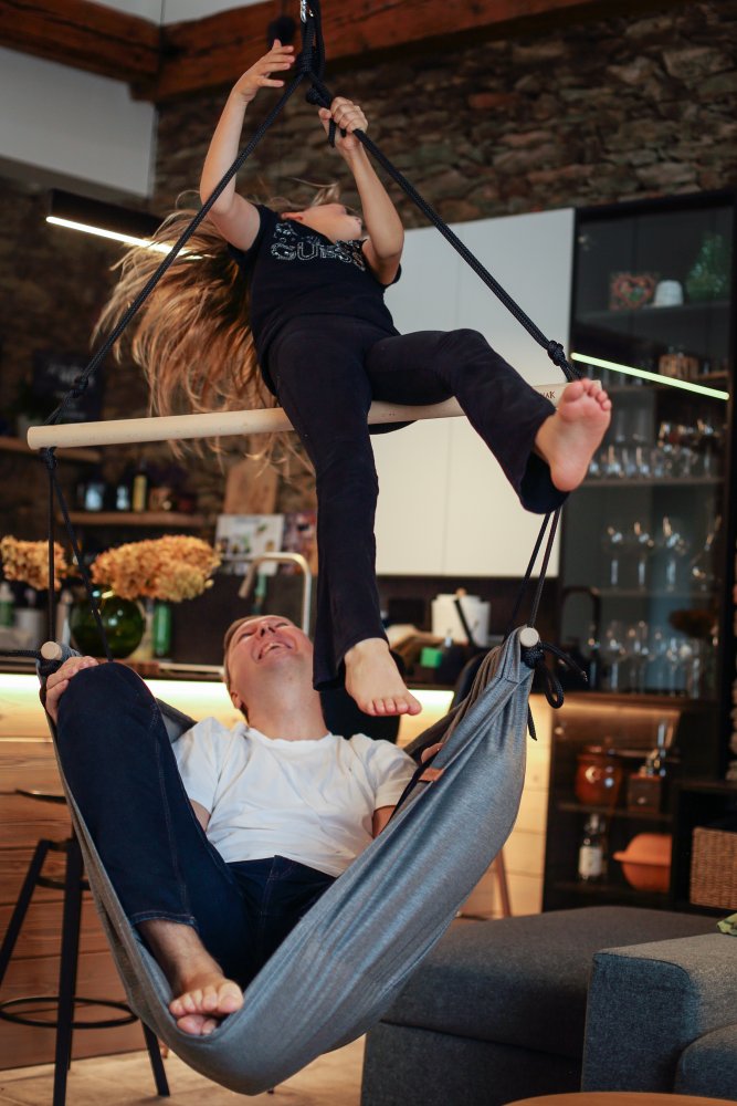 ÚČEL PRODUKTUHojdavak MAXIMUS OUTDOOR je závěsné textilní křeslo určené pro dospělé, které vyrábíme v Česku dle vlastního návrhu. Díky kvalitní matraci a polštářku si v něm můžete pohodlně odpočinout, přečíst knížku, či jinak zrelaxovat jak vám je milé. Maximus tak nahrazuje křeslo nebo lenošku.K výrobě používáme kvalitní tkaninu ze 100% polyesteru s vodoodpudivou úpravou. Vaky šijeme z dvojité látky pro vaši bezpečnost, pohodlí a příjemný vzhled houpadla. Dřevěné části jsou naimpregnované Osmo olejem. Houpadlo je tak vhodné pro venkovní použití. Koupí výrobku podpoříte rozvoj chráněných dílen.Houpadlo Hojdavak MAXIMUS OUTDOOR slouží k houpání, sezení a ležení – maximální nosnost je 140 kg.Výrobce tkaniny doporučuje použití prostředků s UV filtrem (impregnace na stany) pro ochranu výrobků exponovaných na přímém slunečním světle.PRODUKT OBSAHUJEtextilní vak – 100% polyester s vodoodpudivou úpravou – délka vaku v místě ležení je 140 cmmatrace ze zdravotně nezávadné PUR pěny – rozměr 140 x 40 cmpotah na matraci ze 100% polyesteru s vodoodpudivou úpravou, na zipdřevěná rozpěra z tvrdého buku – délka 100 cmOutdoor ošetřena OSMO UV ochranným bezbarvým olejem vyrobeným na základě přírodních olejů2 ks dřevěných nosnic z tvrdého buku – délka 40 cmOutdoor ošetřeny OSMO UV ochranným bezbarvým olejemkarabinapolyesterové lano s jádrem o prům. 8 mmpolštářek s potahem na zip v barvě vaku vyrobeným ze 100% polyesteru s vodoodpudivou úpravou (30×50 cm)návod k použitíobal z netkané textilieKAM ZAVĚSITHoupadlo nahrazuje křeslo nebo lenošku. Ideální pro zavěšení je zahrada (na strom), případně na terasu či lodžii. Zkrátka všude tam, kde rádi odpočíváte.JAK ZAVĚSITPro bezpečnou instalaci kotevní techniky do stropu doporučujeme konzultaci s odborníky ve specializovaných obdchodech s kotevní technikou, kteří Vám ochotně poradí konkrétní řešení, které pak můžete zakoupit u nich v obchodu nebo v hobby marketech. Velice záleží na materiálu ve stropu (beton, cihla, dřevo, sádrokarton,….) a jeho vlastnostech jako je drolivost nebo pórovitost.DŮLEŽITÉ UPOZORNĚNÍPři houpání nesmí docházet ke tření kov o kov (např. karabina o vrut ve stropu). Jako mezičlánek využijte bílé nebo černé lano k zavěšení (k zakoupení zde).ÚDRŽBAPro dlouhou životnost pečujte o výrobek dle Návodu k použití. V případě využívání houpadla v exteriéru (venku) chraňte houpadlo před deštěm a extrémními povětrnostními vlivy.BEZPEČNOSTNÍ VÝSTRAHA• Pečlivě si přečtěte návod k použití a výrobek používejte dle uvedených pokynů – jakékoliv úpravy a změny výrobku, které mají negativní vliv na bezpečnost a ochranu zdraví jsou zakázány. Nezavěšujte kolébku v blízkosti ohně nebo jiných tepelných zdrojů.• Nenechávejte dítě bez dozoru• Nepřekračujte povolenou nosnost 140 kg – výrobce neručí za jakékoliv nehody.• Kontrolujte pravidelně stav použitých lan – musí být v perfektním stavu, nesmí docházet k mechanickému opotřebení. V případě zjištění i minimálního poškození lano okamžitě vyměňte!• Kontrolujte pravidelně pevnost způsobu zavěšení – houpadlo umístěte jen na místa, která bezpečně udrží vzniklou zátěž. Pozor na sádrokartonové stropy či jiné obklady. V tomto případě zavěšení vždy konzultujte s odborníkem. Pevnost vrutů a držáků zkontrolujte zátěžovým testem s využitím vlastní váhy.• Obaly – plastové sáčky a další obaly musí být po rozbalení výrobku mimo dosah dětí do 3 let.